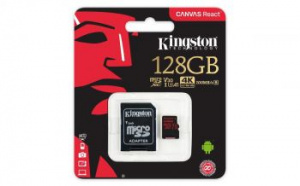 Флеш карта microSDXC 128Gb Class10 Kingston SDCR/128GB Canvas React + adapter