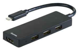Разветвитель USB-C Hama 00135762 3порт. черный