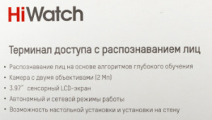 Терминал доступа с распознаванием лиц 3.97" цветной LCD сенсорный экран; 2Мп; WDR; режим аутентификации лиц: 1:1 или 1:N; дальность распознавания 0.3 м до 1.5 м; скорость распознавания 0.2с до 1000 лиц; 150000 событий; до 20000 захваченных изображений; Ethernet 10/100; 1 RS-485 (подключение считывателя); USB; замок; магнитный контакт; кнопка выхода; темпер; Web интерфейс; DC12В 1.5А;-10 C...+50C пластик