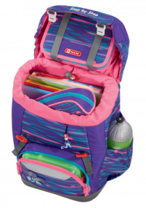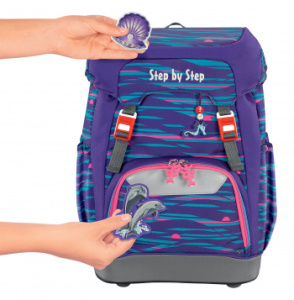 129671 Ранец детский Step By Step Grade Shiny Dolphins сиреневый/голубой 4 предмета