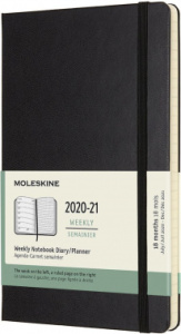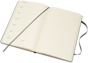 Описание | Записная книжка-еженедельник Moleskine в твердой обложке рассчитана на 18 месяцев, начиная с июля и заканчивая декабрем. На левой странице отображаются намеченные на текущую неделю встречи, а правая линованная страница предназначена для записи заметок и идей. |