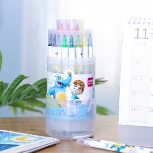 Фломастеры Deli 70734 двойной пиш. наконечник смываемые 24цв. пластиковая туба