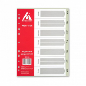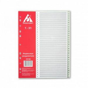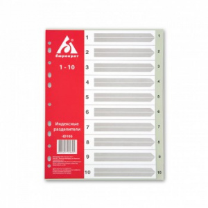 Разделитель индексный Бюрократ -ID105 A4 пластик 1-10 серые разделы