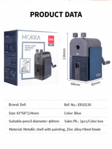 Точилка для карандашей механическая Deli ER10230 1 отверстие металл синий/черный