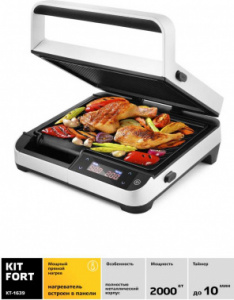 Электрогриль Kitfort КТ-1639 2000Вт белый/черный