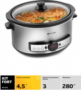 Медленноварка Kitfort КТ-213 4.5л 280Вт серебристый/черный
