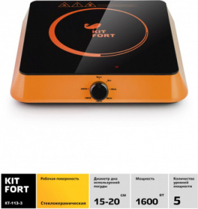 Плита Электрическая Kitfort КТ-113-3 оранжевый/черный стеклокерамика (настольная)