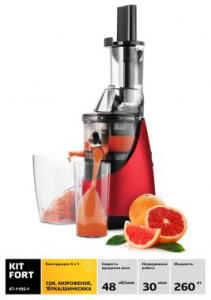 Соковыжималка шнековая Kitfort КТ-1105-1 260Вт красный/черный