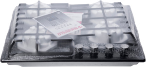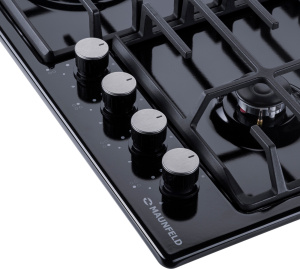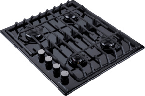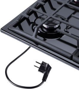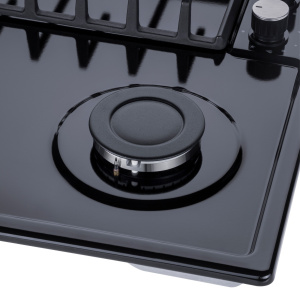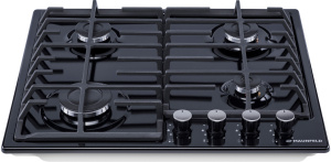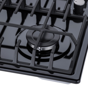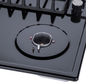 Панель выполнена из металла, покрытого термостойкой прочной эмалью черного цвета. Четыре стандартные итальянские конфорки SABAF мощностью 1000 Вт, 1700 Вт, 1700 Вт и 2600 Вт спроектированы таким образом, что огонь не перегревает ни чугунные решетки, ни ручки управления.