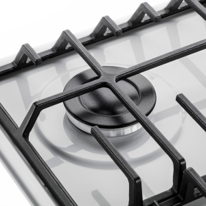 Обновленный дизайн чугунных решеток в виде крестообразного соединения над конфорками позволяет готовить в посуде разного диаметра, не используя специальные подставки. Решетки теперь расположены вплотную друг к другу, образуя единую рабочую зону. Теперь вы можете просто передвинуть посуду с конфорки на конфорку, не поднимая ее.