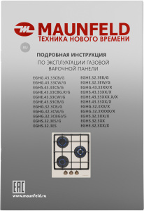 EGHG.43.33CBG.R/G Встраиваемые газовые панели MAUNFELD/ Тип: газовая 45см, закаленное стекло, Тип установки: независимая Управление: фронтальное, переключатели