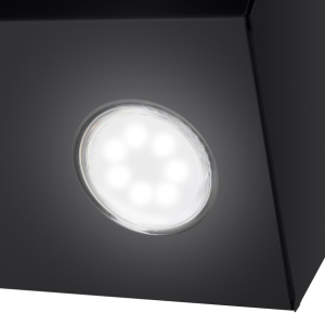Кнопочное управление 3-мя скоростными режимами и светодиодной подсветкой, располагается на фасаде. Два LED-источника мощностью по 3 Вт отличаются простой установкой без применения специальных инструментов
