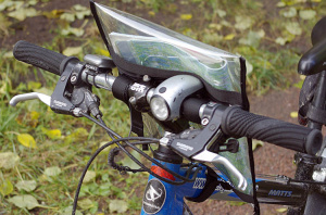 - Фиксируется с помощью "липучек" на руль и раму велосипеда