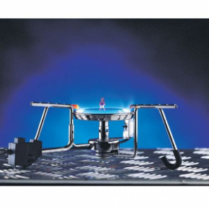 Благодаря мощному и широкому стальному каркасу, на горелку можно поставить даже ведро с водой. Широкие лапки конфорки позволяют ставить на горелку посуду большого объема. В конструкции имеется предварительный подогрев газа (Anti-Flare System) и пъезоподжиг.