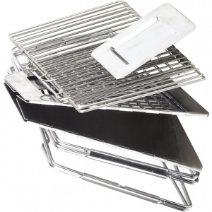 Представляем версию гриля для людей, которым не сидится на одном месте! Складной гриль "Broil" изготовлен из нержавеющей стали и весит всего 1.83 кг. Размер жаровни - 30×30 см, что вполне достаточно для небольшой компании. Размер гриля в упаковке: 36×20×5 см, благодаря чему он легко поместится в небольшом рюкзаке, пляжной сумке и переполненном багажнике машины. Раскладывается и собирается "Broil" за пару минут. Все составляющие конструкции прочные, надежные и легко отмываются. В качестве топлива используется древесный уголь.