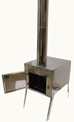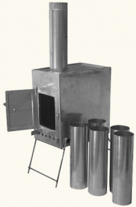 Три модели: Для удобства транспортировки труба разбирается и укладывается внутрь туристской печки, ножки складываются. |