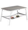 Стол разработан специалистами компании Outwell для активного отдыха на природе, кемпинга и пикников. Эта модель так же может быть установлено на дачном участке. Стол выполнен из прочного алюминия, который отличается повышенной прочностью и функциональностью. Ламинированная столешница застрахована от жирных пятен и грязи. Она легко моется при помощи влажной тряпки. Конструкцией предусмотрена удобная сетка-полочка, где можно складировать различные полезные мелочи. Ножки регулируются по высоте, что очень удобно, если на отдыхе есть дети. Модель Toronto M складывается до очень компактных размеров. В комплекте прилагается упаковка с ручками, что значительно облегчает транспортировку.