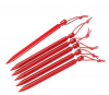 Колья для палаток, Y-образная конструкция которых позволяет лучше проникать и удерживаться в любом виде грунта. Сконструированные из алюминия серии 7000, колышки очень легкие и прочные. Петля из светоотражающего шнура на конце колышка позволяет легко вынуть его из почвы, а красный цвет не затеряется на земле.