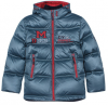 Куртка для мальчика из плащевой ткани имитация Мемори. Детали куртки: подкладка (кроме рукавов) - флис, подкладка рукавов - нейлон, утеплитель - пух, регулировка фиксаторами на капюшоне и по низу изделия, застежка на молнию по всей длине куртки, внутренняя ветрозащитная планка, внутренние трикотажные манжеты, два прорезных кармана на молнии, полочка декорирована аппликацией с вышивкой.