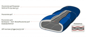 - Внешняя ткань низ Polyester 190T Diamond RipStop PU 250 mm H2O