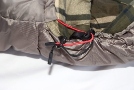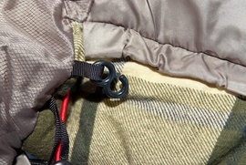 - Пластиковый крючок фиксирует шнуры затяжек с внешней стороны спальника