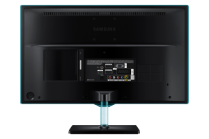 Невозможно не заметить привлекательный дизайн телевизора Samsung T27D390-EX. Выполненный в стиле хай-тек, он идеально впишется в любой современный интерьер. Небольшие, практически незаметные, рамки создают эффект безрамочной конструкции, акцентирую все внимание на экране и на происходящем на нем. Бирюзовое обрамление вкупе со стойкой придают особый шарм и элегантность. Стоит отметить, что телевизор легко крепится к стене, что позволяет не только сэкономить место, но и внести новые нотки в домашний интерьер. Специально для того, чтобы не нарушать привлекательность дизайна, все органы управления и разъемы были убраны на заднюю панель.